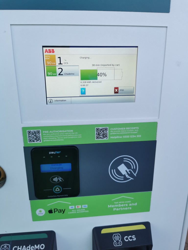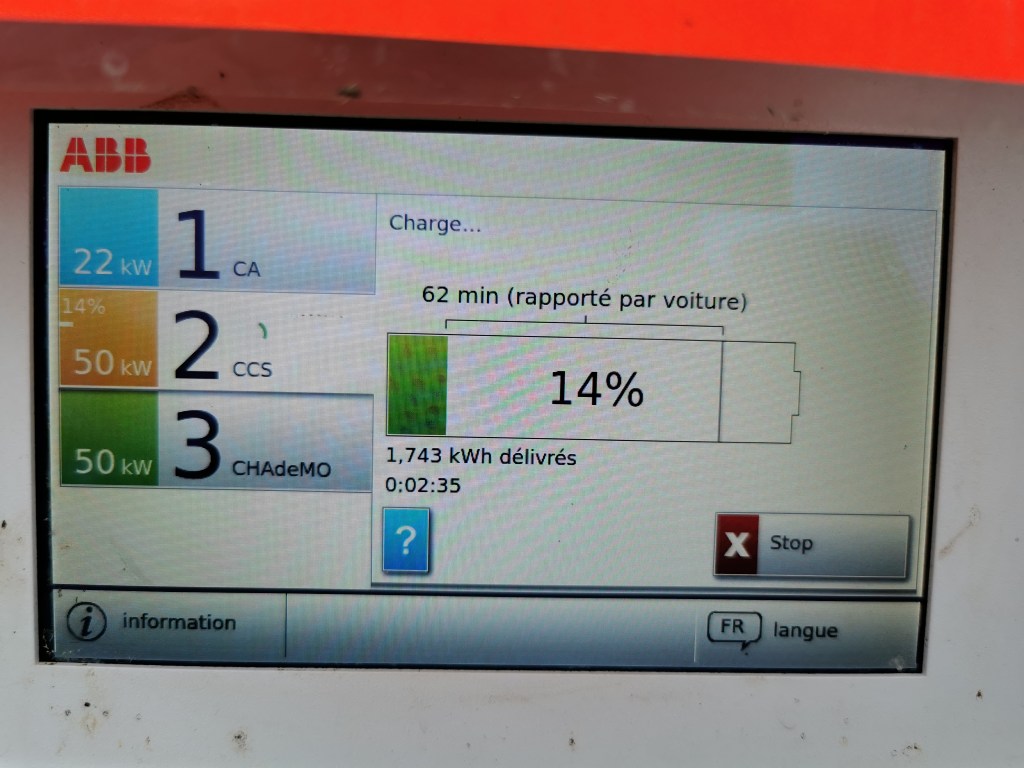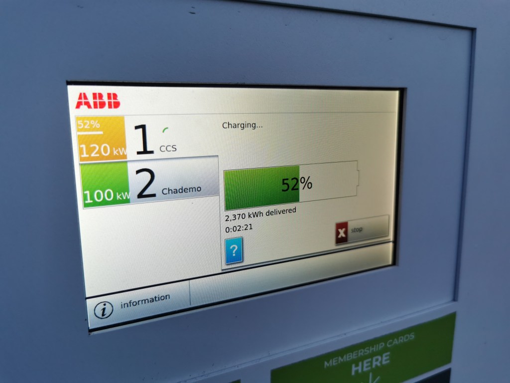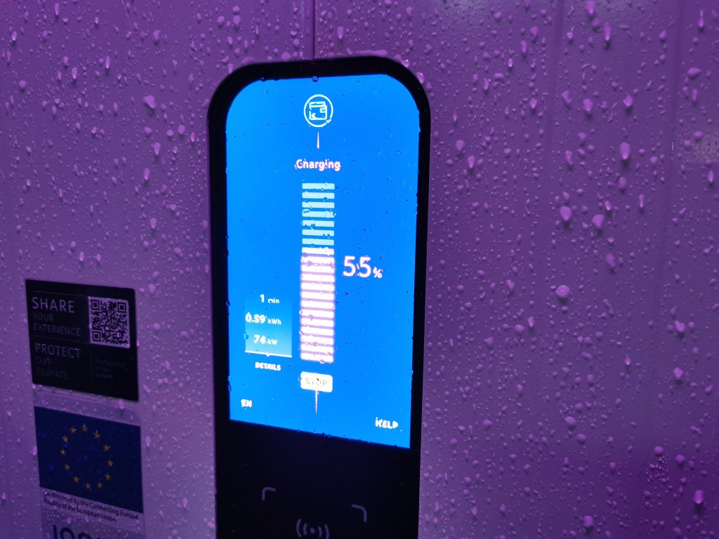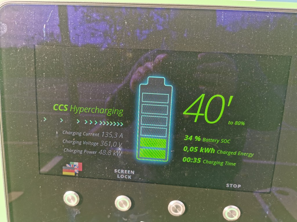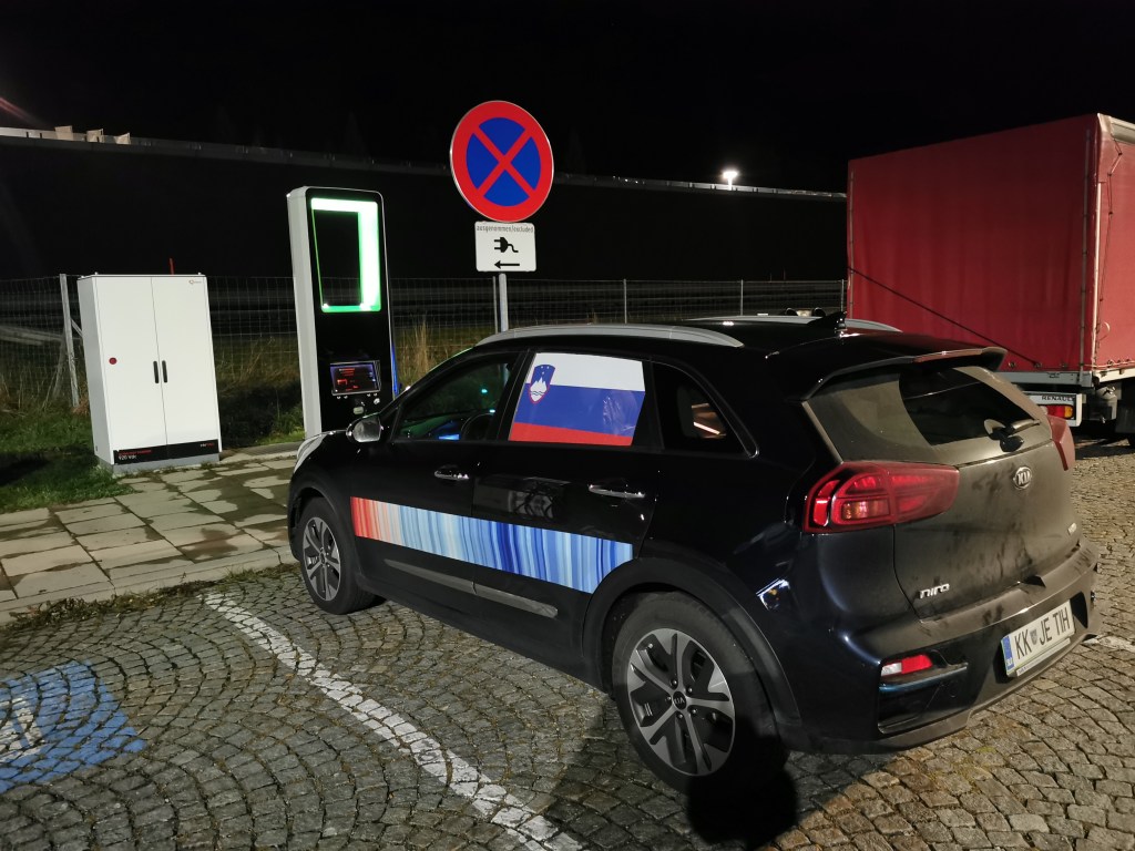 Polnila sva 34 minut, za polnjenje sva plačala 12,67€ – s kartico Gutmann. Mislim, da je bila to edina polnilnica, kjer se je obračunaval čas.