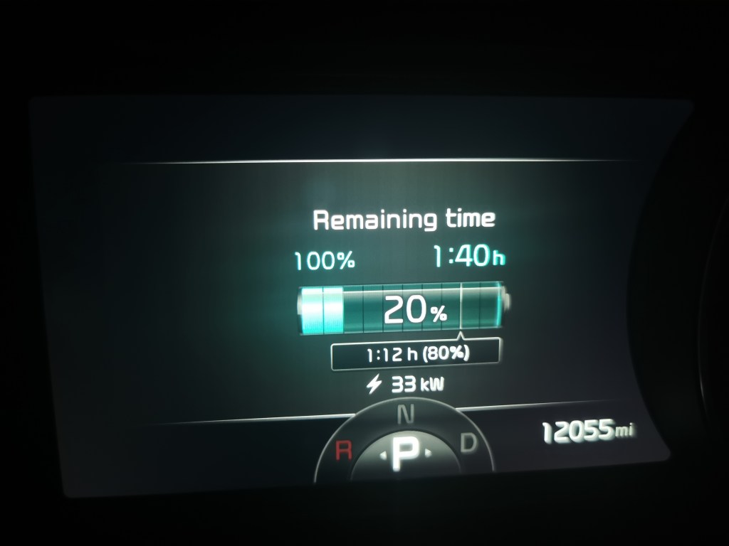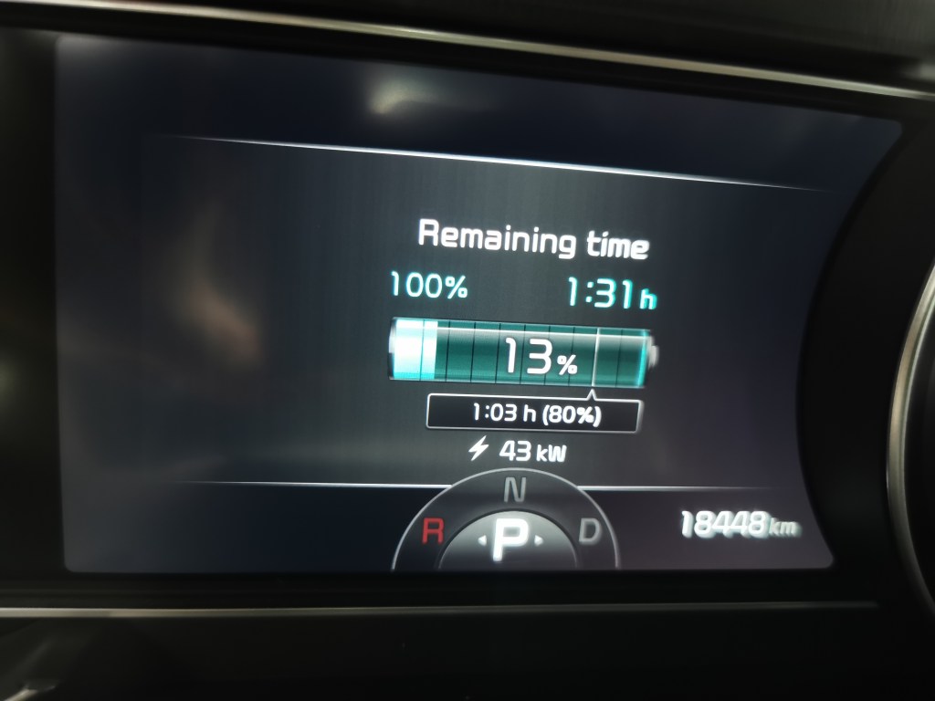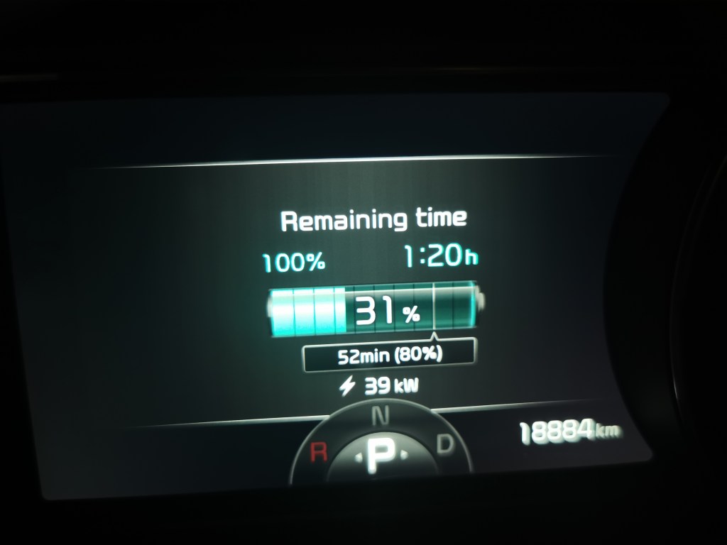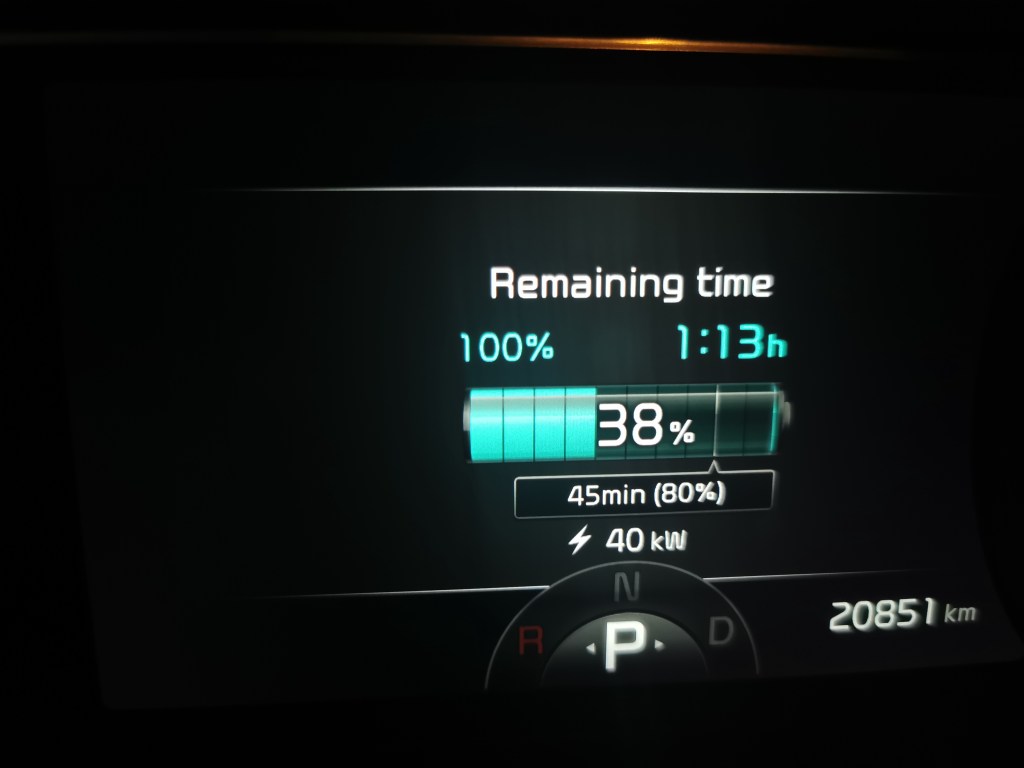 Avto bo poln v cca. 14 urah, verjetno pa ga ne bom uspel napolniti na 100% pred vrnitvijo na Brnčičevo. Upam, da mi ga uspe napolniti čim več čez noč.