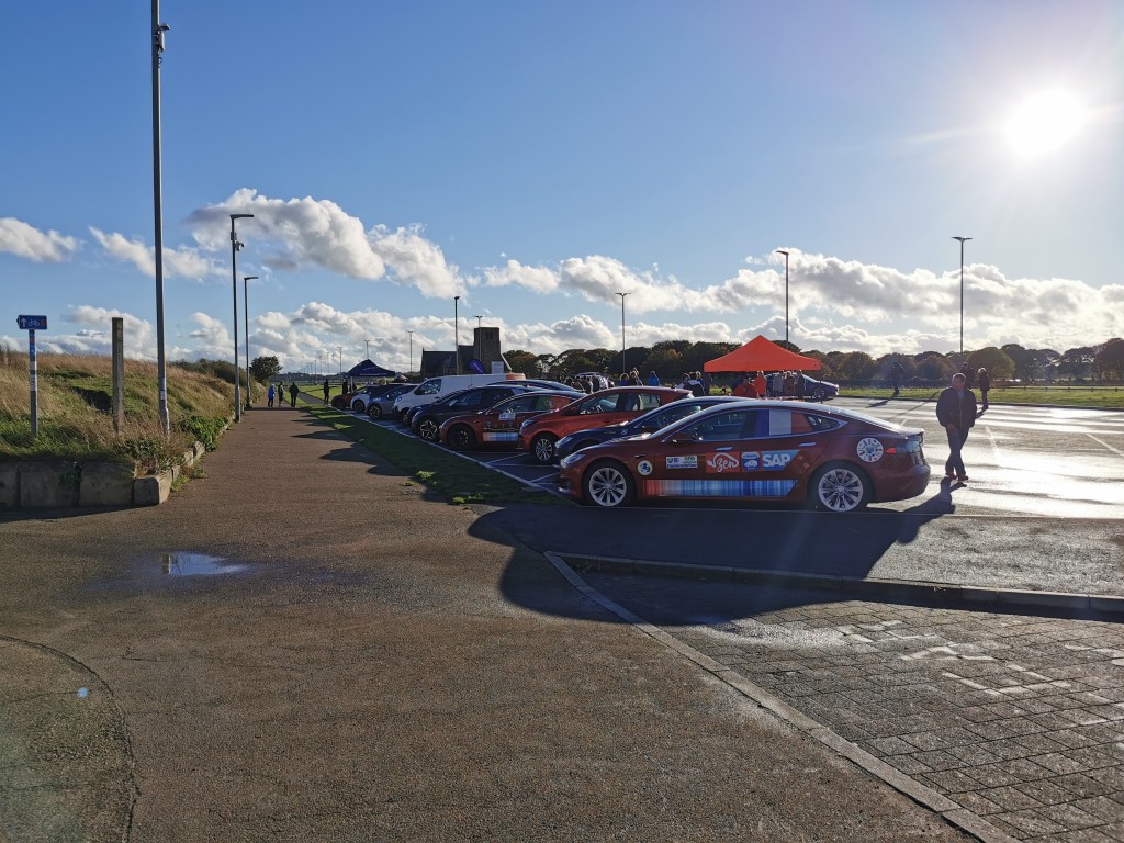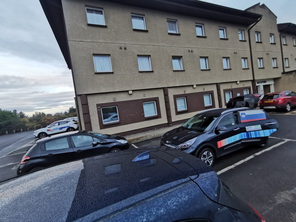 Po sorazmerno kratki noči (od pol enih zjutraj do cca. 6h zjutraj) sem še pred zajtrkom šel preverit stanje avta. Vse se je izšlo, avto je bil napolnjen na 100%. Kable sem v miru pospravil in odšel na zajtrk.