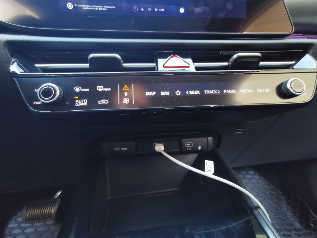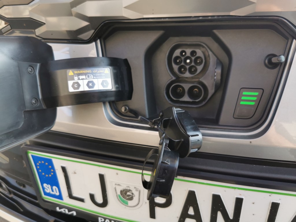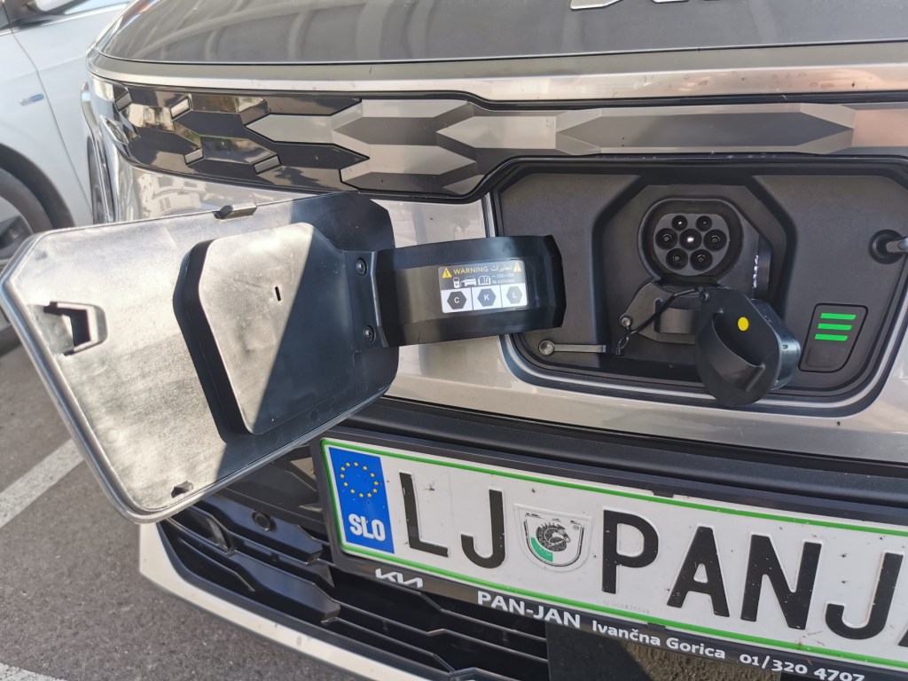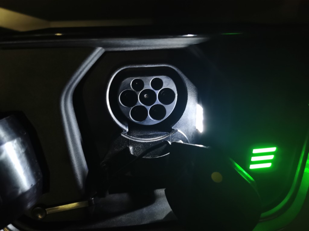 Polnjenje ni pri tem avto nobena novost, ima praktično enake zmogljivosti kot predhodnik (do 78 kW na DC oz. 11 kW 3-fazno na AC). Ima osvetljen priključek, prikaz napolnjenosti pa je sedaj viden na majhnih LED indikatorjih spredaj (ne več za vetrobranskim steklom). Zakaj tako, mi ni jasno. Mogoče so ciljali na UVO, pa se le-ta pri nas ne prodaja 😦 Škoda, ker v letu 2022 bi pa človek pri avtu za 45.000€+ to že nekako pričakoval.
