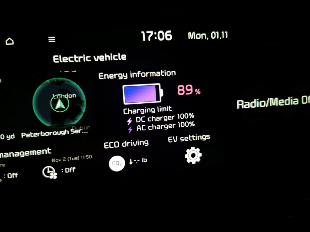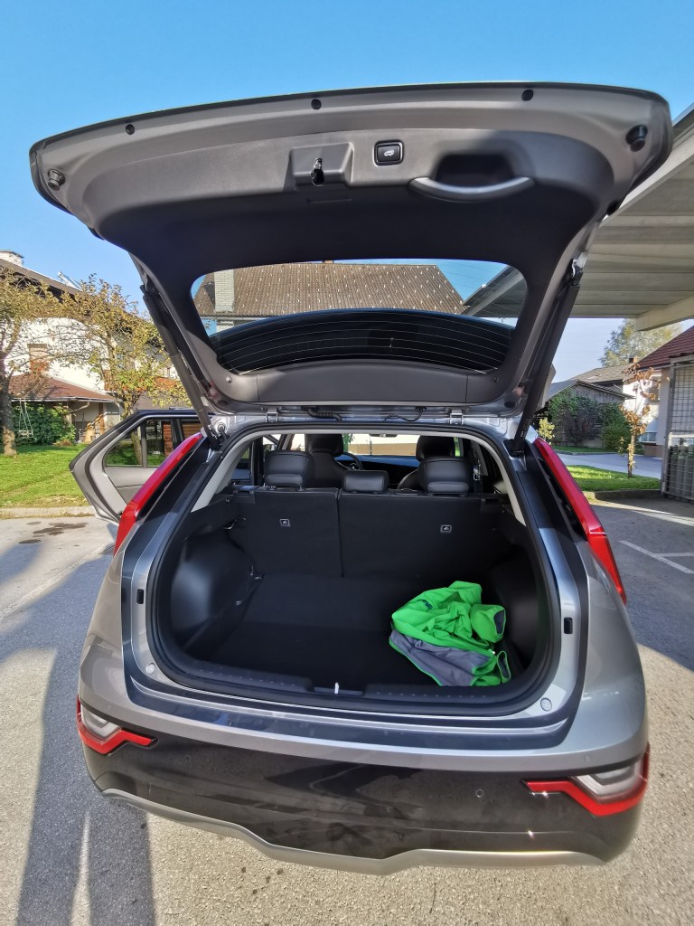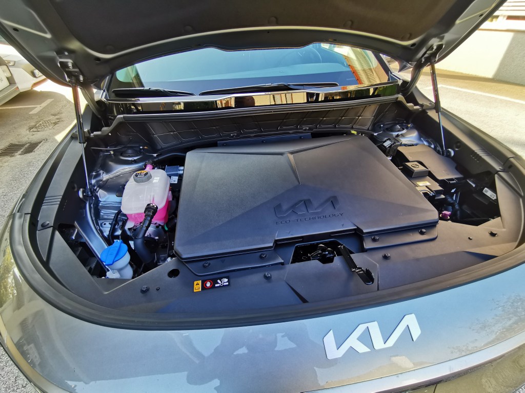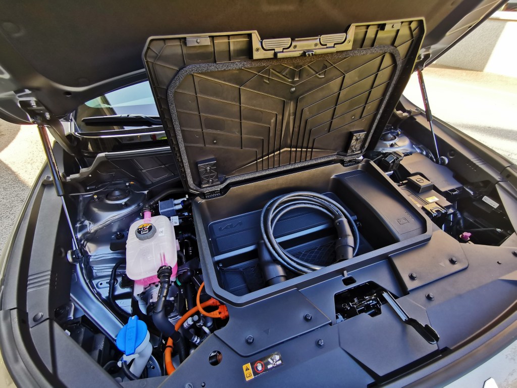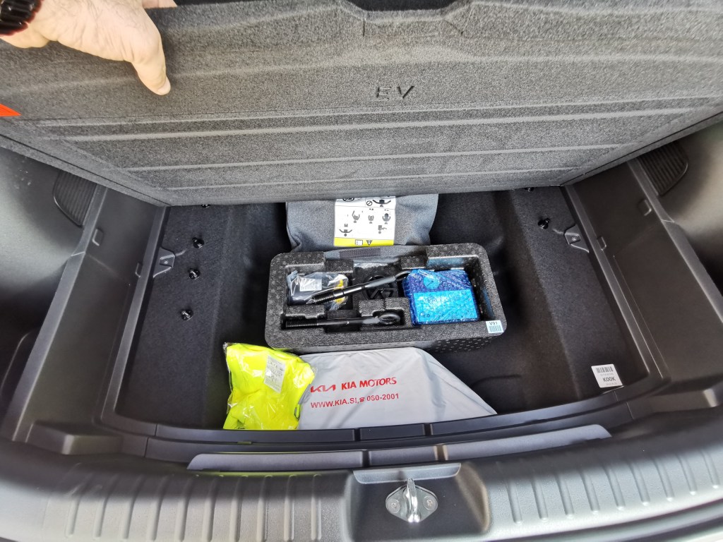 Polnjenje ni pri tem avto nobena novost, ima praktično enake zmogljivosti kot predhodnik (do 78 kW na DC oz. 11 kW 3-fazno na AC). Ima osvetljen priključek, prikaz napolnjenosti pa je sedaj viden na majhnih LED indikatorjih spredaj (ne več za vetrobranskim steklom). Zakaj tako, mi ni jasno. Mogoče so ciljali na UVO, pa se le-ta pri nas ne prodaja 😦 Škoda, ker v letu 2022 bi pa človek pri avtu za 45.000€+ to že nekako pričakoval.