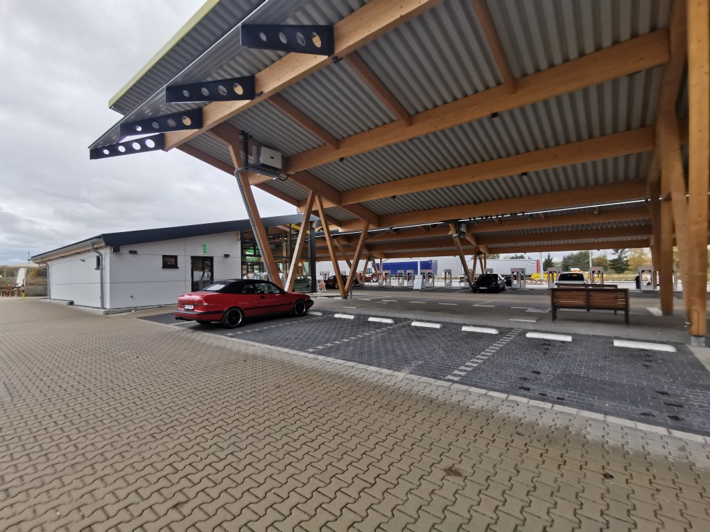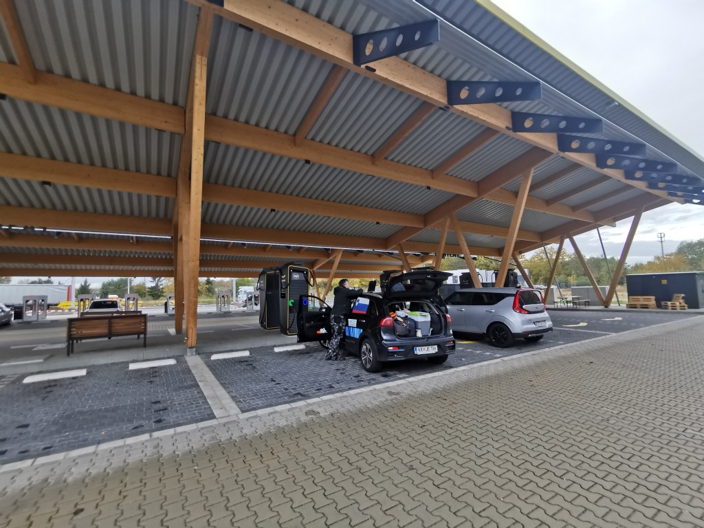 To počivališče se nahaja nad Dunajem in je to praktično zadnje hitro polnilni mesto (vsaj za CCS) pred Češko. McDonald’s je precej oblegan, zato se mi je avto ta čas dejansko napolnil na 94 %. To je bilo moje prvo plačljivo polnjenje tisti dan (pa hkrati tudi zadnje).