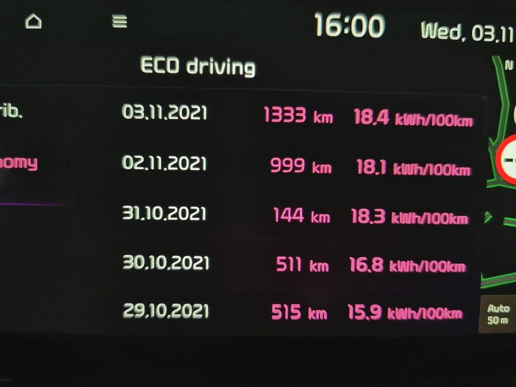 Sama pot je bolj podrobno opisana spodaj. Vseeno lahko napišem, da sploh ni bil nek hud podvig – napram mojim prejšnjim. Temu pripomore več dejstev: avtomobil z večjim akumulatorjem (eNirovih 64 kWh napram 28 kWh v Ioniqu), bistveno boljša polnilna infrastruktura, na koncu pa še vedno vseeno malce prav pridejo izkušnje. Z Ioniqom sem prevozil cca. 100.000 km in ga nisem nikoli spraznil tako nizko, da bi se avto ustavil. Enkrat sem se do doma pripeljal na zadnje iskrice, pa še to sem se potrudil. Nočem namreč uničevati akumulatorja in ga puščati ali prazniti na prenizko napetost.