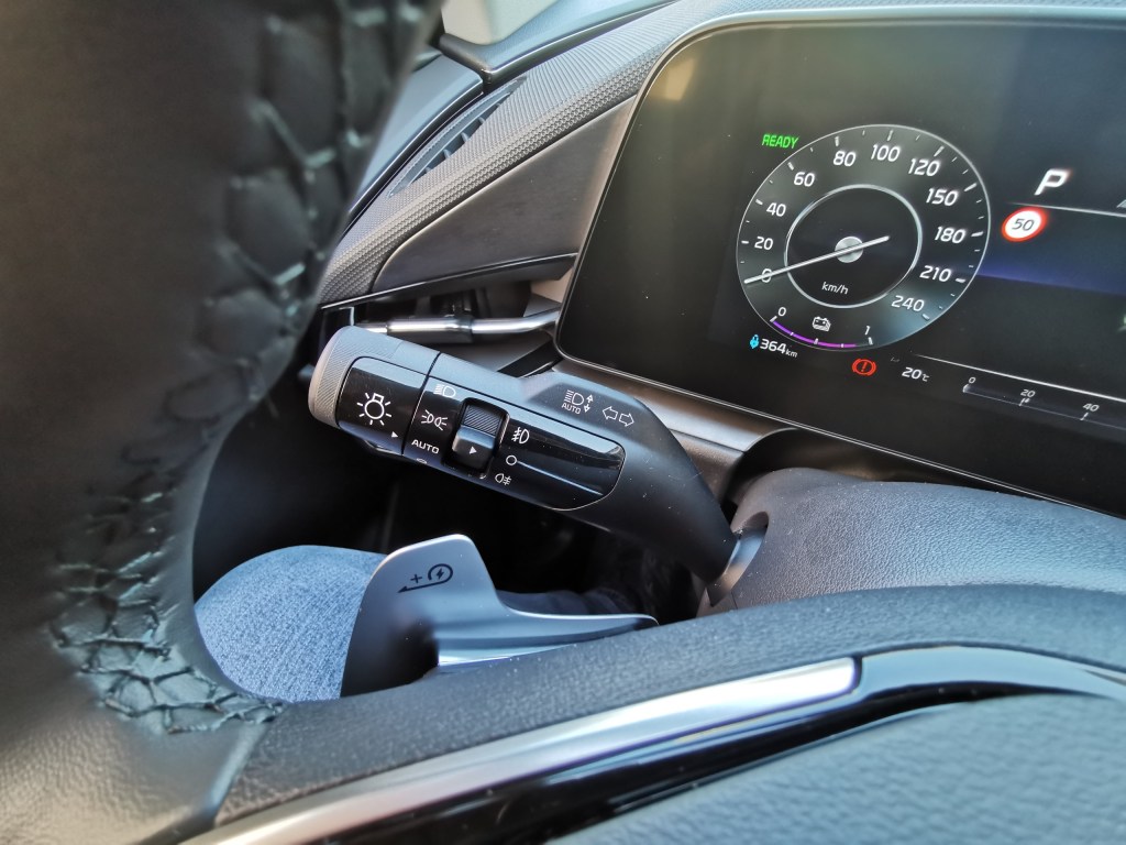 uporabljal sem tudi ročice za nastavljanje regeneracije. Ko nisem uporabljal tempomata, sem večinoma vozil brez regeneracije, ko pa je bilo potrebno zavirati, sem samo pridržal desno ročko (regeneracija skoči takoj na tretjo stopnjo)