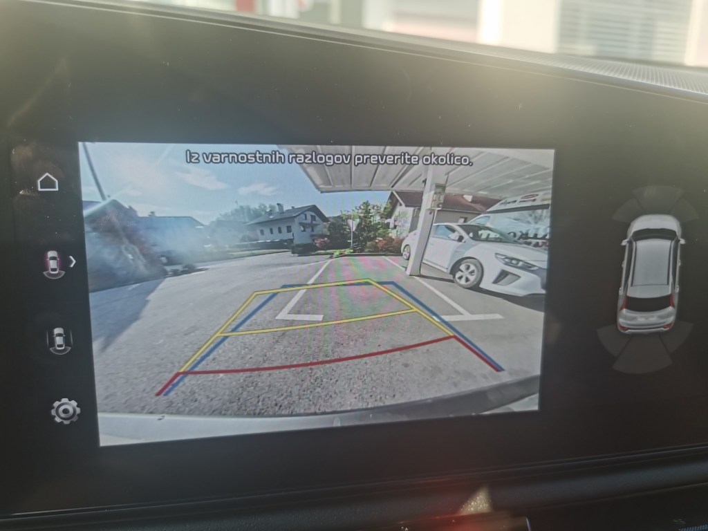 Novi ima tudi precej boljši sistem za ohranjanje voznega pasu. Zanimivo mi je sicer, da ga moraš vsakič ob vklopu dodatno vključiti (spodnji desni gumb levega dela volana) vendar zadeva potem deluje tudi pri izključenem tempomatu. Opcija deluje nekako med sistemom, ki ga ima Hyundai Ioniq 28 kWh ter moj stari e-Niro. Slednji sicer drži pas čisto ok ampak samo ob vključenem tempomatu! Ioniqu se LKAS vključi avtomatično ob vklopu avtomobila in se zadeva aktivira sama pri hitrostih nad 60 km/h in deluje do nekje 56 km/h, potem se deaktivira.