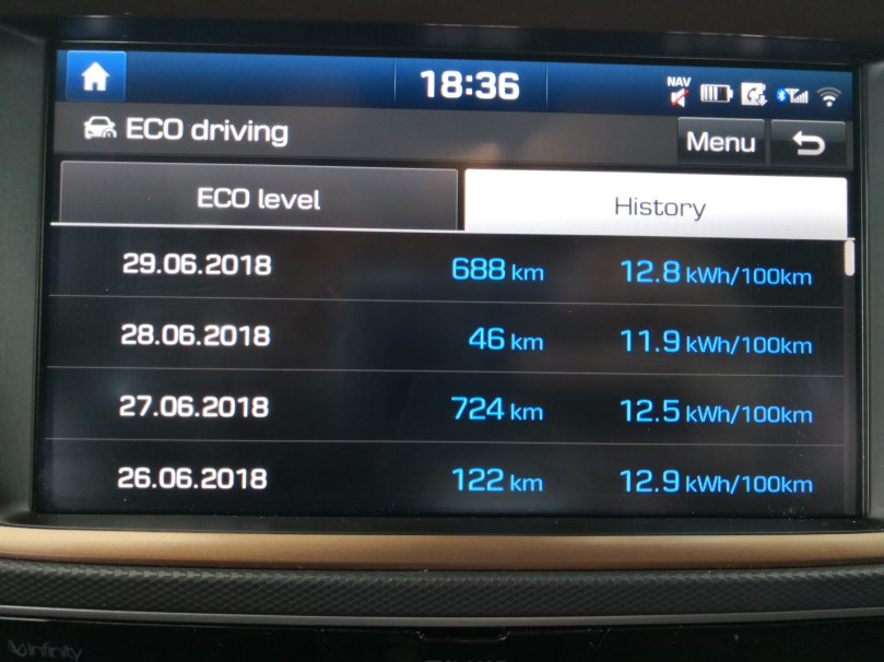 Gume dovolj napolnjene (vse na 2,5 bara), obvezna oprema v avtu, kabli, adapterji, podaljšek, obleke itd. vse varno spakirano. Priklopim telefon na polnilec, nastavim pod do Lidla Maribor in odrinem. Ura je bila nekje okoli 6:30 zjutraj. takoj po tem, ko sem speljal z dvorišča, sem resetiral še potovalna računalnika (A in B) ter števec povprečne porabe.